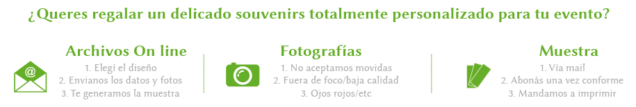 Código de diseño elegido, nombre del homenajeado/a, fecha de evento, evento, ej. Mi primer añito y foto si lo requiere. (cantidad según producto elegido)